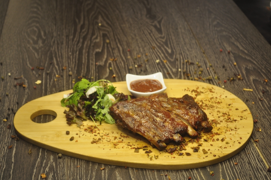 Свиные ребрышки рипс с соусом BBQ за 100 гр. (средний вес 250-300 гр.)