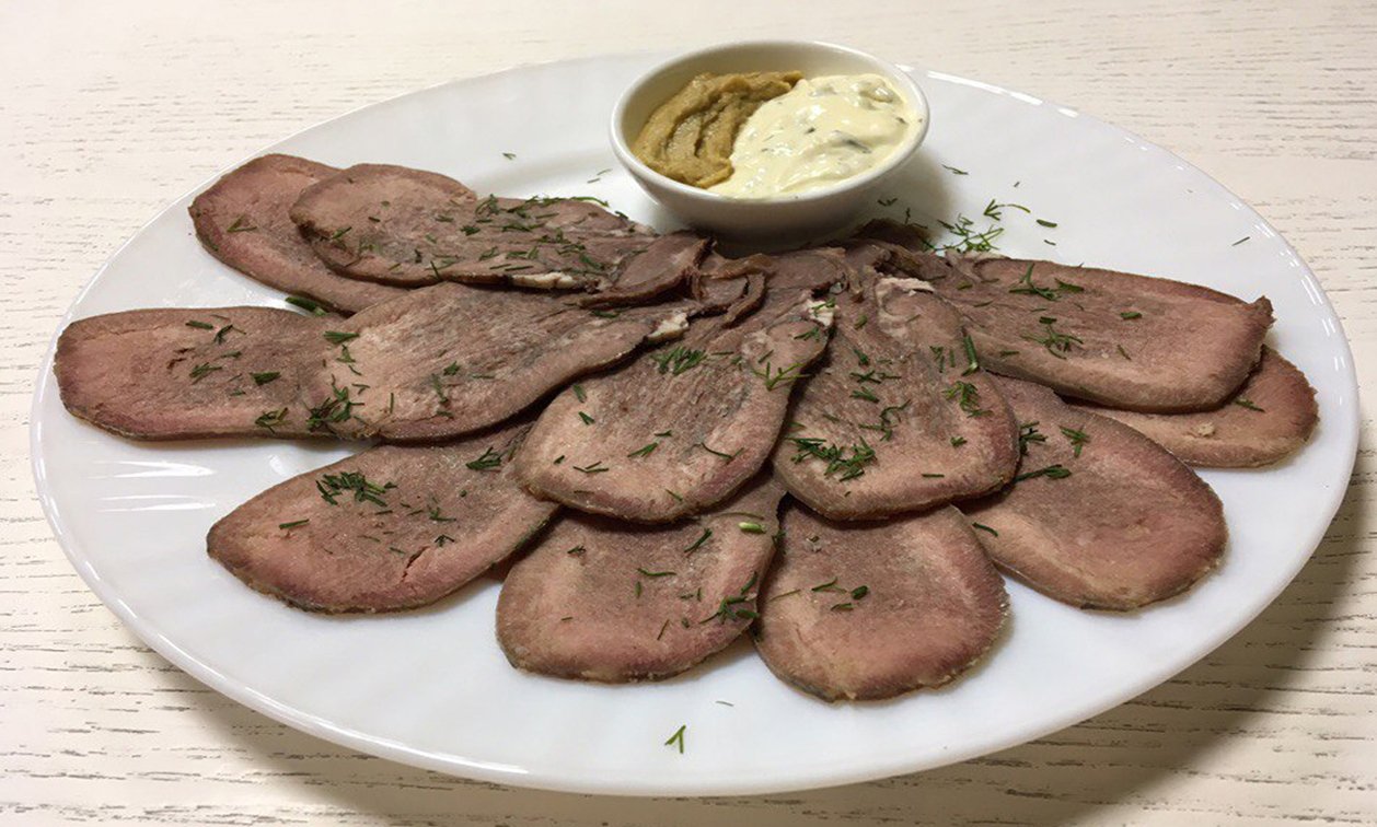 Язык говяжий (с хреном или горчицей)